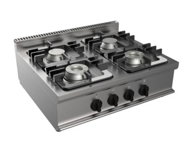 Cucina da banco in acciaio inox a quattro fuochi ad accensione manuale.